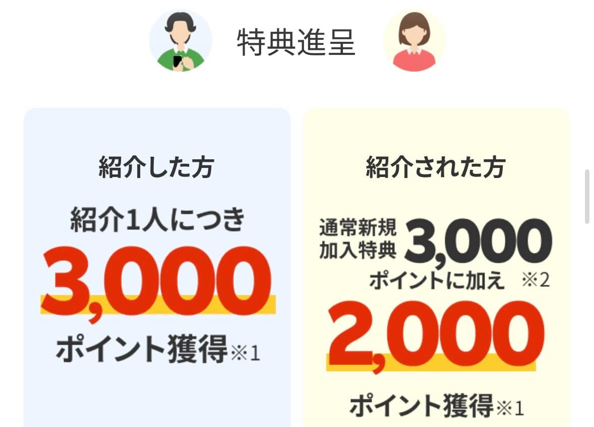 • 紹介リンク経由で+2,000ポイントを確実にゲット。