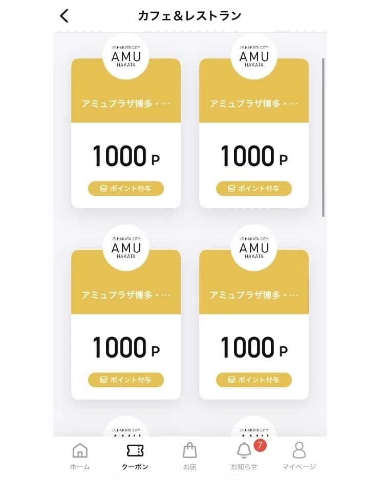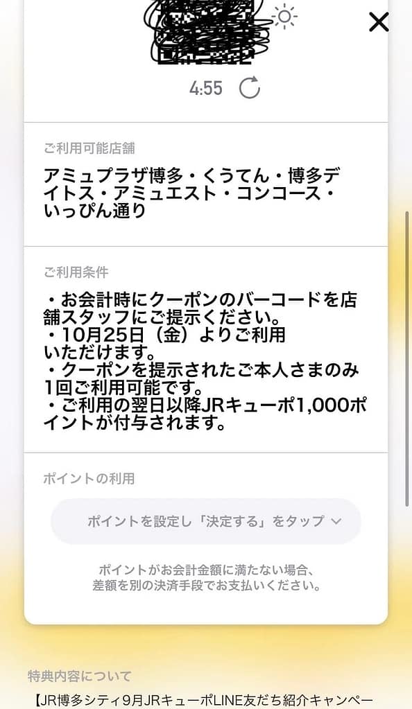 付与クーポンは博多でしか使えないけど、翌日もらえたポイントは、博多以外でも使えました🌟なので、出張で博多に行ける時にタイミングよく使ってます!
