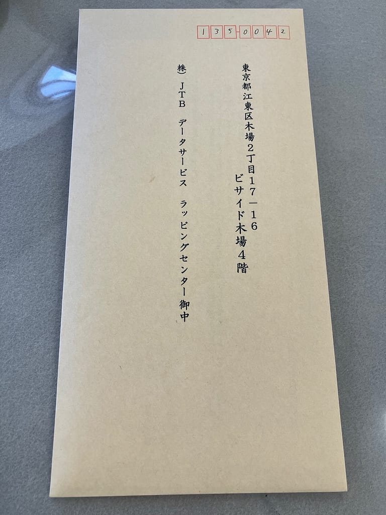 (株)JTB データサービス ラッピングセンター⾏ - 約2週間後、JTBトラベルギフト(カード型)が届く!